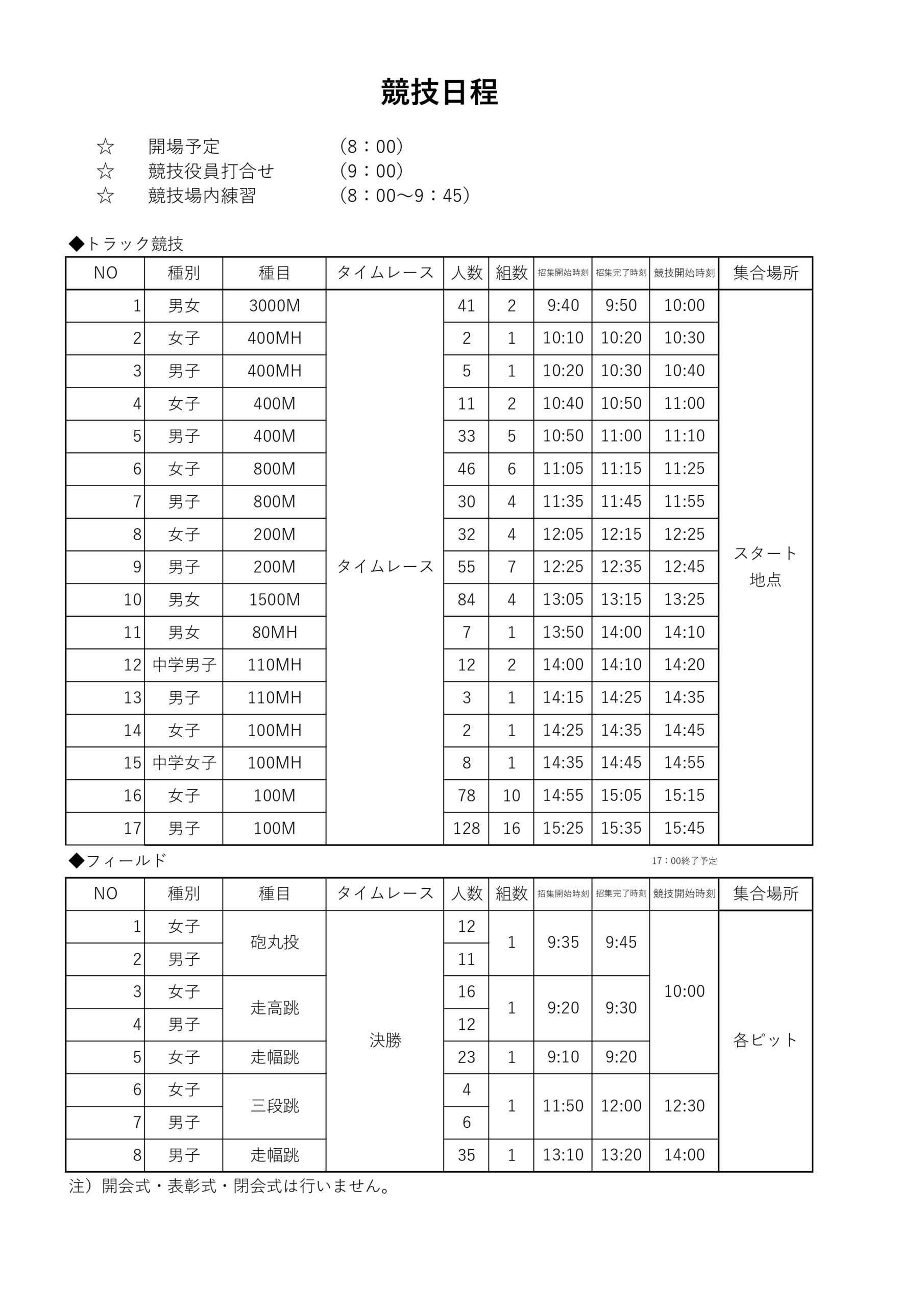 3月28日土曜日開催の陸上競技記録会、タイムテーブルを取り急ぎ掲載いたします。